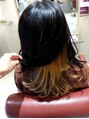 インナーカラーの部分はブリーチを1回し、ブリーチの黄ばみを無くす為に薄くティアをかぶせました。他の部分は表面と毛先の部分が明るくなっていたので、地毛に近い様におさえました。