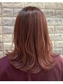 レッドオレンジに太めのベールハイライトをたっぷり入れたカラーグラデーションスタイル☆この夏オススメのトレンドカラーです!トリートメントカラーなのでダメージを最大限に抑えて綺麗なカラーにしましょう♪ハイライトの太さや量はご相談ください。