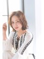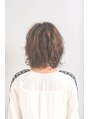 鎖骨下と顎下でつなげたレイヤーボブ。、全体に内・外のミックスパーマをかける。カラーはミントアッシュ。
