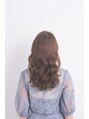 ワンレングスのロング。ミックスパーマでほどよいほつれ感を演出。カラーは細めのハイライトにマッドグレージュカラーで立体的に。