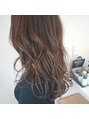 アッシュをグラデーションに入れつつ、コラーゲンとプラチナナノコロイドをプラスして艶カラーに。ゆる巻きで大きく動きをつけたスタイル。