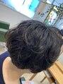 元々のくせ毛を抑えるのではなく活かすようにカットさせていただきました。えりあしをタイトにスッキリさせて全体的には毛流れがうまく動きになるように梳きバサミを極力使わない調整でまとまりをよくしています。