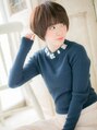 厚めバング,ベビーバングで目力UP!モダンショートでもラブでガーリーな雰囲気に♪コロンとした耳横のワンカールがフェミニンで大人かわいい。アンニュイカールのエアリーショートも◎【髪質改善】【美髪】