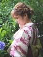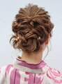 ミディアムでもできるヘアアレンジ。襟足はきれいにまとめて、全体的にふんわりくずしました。前髪もランダムに散らしてゆるさを出しました。