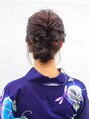 浴衣の色に合わせて大人っぽくアレンジ。くずし度合いを変えれば、大人っぽくもフェミニンにもイメージを変えられます。