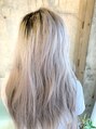 根本は濃いめのグレーで、全体にハイライトを入れてホワイト調グレージュを!ブリーチ2回は必要となります。