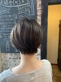 コンパクトなひし形ショートボブ!収まりと、毛先に質感にこだわったショートスタイルです。顔周りはゆるく流れるように毛先に束感が出やすいようにしています!作りすぎない大人っぽいスタイルがポイントです!