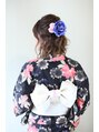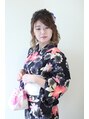 ボブレングスのハーフアップスタイル。ウェーブ・スタイルの浴衣に合わせたお姉さんなスタイル。注)浴衣着付けは出来るスタッフがいるときのみとなりますので、電話にてご確認お願い致します。
