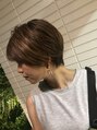 後頭部のボリューム襟足にそうようにレイヤーで軽くシルエット重視。上からもってきた重めの前髪にアシメのラインがまた可愛い♪トップにレイヤーを入れて丸みと軽さをだし動きあるショートレイヤースタイル!耳掛けもできるのがポイント♪