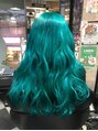 ダメージケアのケアブリーチ2回使用後、エメラルドグリーンを入れて深みのあるカラーに♪