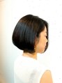 段差をほとんどつけないシンプルなボブスタイルです。実は毛量や骨格に合わせて細かい調整を加えています。モデルさんは耳後ろとえりあしに量が溜まりやすく、すくだけではすぐにボテッと頭が大きくなるのでインナーに見えない段差をつけています。