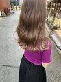 いつでも大人気!ミルクティーベージュ♪全体的にブリーチを使ったハイライトをたっぷり入れる事でより透明感、柔らかさUP♪オリジナルブレンドで少しパープルも組み合わせる事で光の加減でハイライトは白っぽく♪夏のデザインカラーご相談下さい♪
