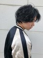 ミディアムヘアにパーマをかけて動きを出しました。フェミニンな中に男らしさをプラス。