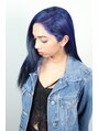 直前に黒染めをしていた髪ですが、ホワイトブリーチでダメージと相談しながら慎重に色を抜き、艶を残しつつ青髪に出来ました♪