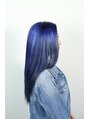 直前に黒染めをしていた髪ですが、ホワイトブリーチでダメージと相談しながら慎重に色を抜き、艶を残しつつ青髪に出来ました♪