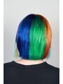 直前に黒染めをしていた髪ですが、ホワイトブリーチでダメージと相談しながら慎重に色を抜き、艶を残しつつ青髪に出来ました♪