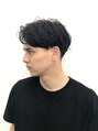 爽やかですが色気のあるです。サイドと襟足は刈り上げて2ブロックにします。トップは、センターで分け目をつけて耳上でカットします。パーマは、ランダムに巻いてくせ毛風な無造作な動きにしました。仕上げも楽チン、時短スタイルです!