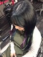 地毛をほんのり青味のあるブルーブラックにした後、エクステで黄緑、水色、紫、ピンクの4色のユニコーンカラーでつけさせていただきました!地毛のお色も混ぜつつエクステでつけさせていただきましたので、全体的に馴染んでくれます!