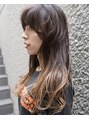 グラデーションカラーのロングスタイル。前髪をワイドに切り込みマッシュウルフベースに。毛先はブリーチでムラっぽくハイライト◎