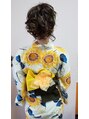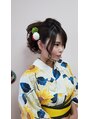 浴衣の着付け(高橋)カールアップでトップは少しふくらませて。高めの位置でポニーテールぽく。