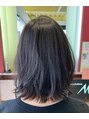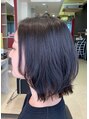 表面に少しレイヤーを入れ、ストレート&ダークトーンでも透明感と軽さを出し、夏の涼しげヘア―に。襟足のカラーがアクセントに!