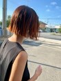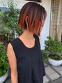 大人ぽいプツッとボブに、オレンジのデザインカラー。根元を残してストリートぽく