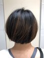 前髪短めのボブ。ライトサイドからえり足を刈り上げてツーブロックにすることによって耳にかけると刈り上げが見え、えり足は重くなりすぎないようにしました!ボブが好きだけど、重すぎるのは嫌な方はおすすめです!