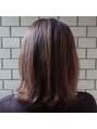 前下がりの毛先切りっぱなしスタイル♪ハイライトで夏らしいスタイルに♪