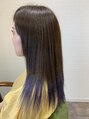 毛先のみブリーチで色を抜いた上から、全体をブルー系の落ち着いたカラーを入れていきます。涼しげな色で夏を乗り切りましょう♪