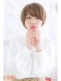 女の子を可愛く見せてくれるラブガーリーショート。コンパクトフォルムでスッキリ小頭に。前下がりで小顔にしてスタイルアップ効果を狙います。目元にかかる斜めバングで目元を印象つけて目力UP!ベージュカラーやハイトーンで明るくしても肌ツヤキレイ。
