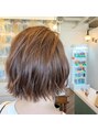 ハイトーンカラーがとっても綺麗なアプリエカラーを使用しております。ベージュやアッシュがブリーチ無しでとっても綺麗に発色しますよ!(^_-)-☆ダメージレスで色味の綺麗なプレミアムカラー、オススメです!!(^^)/