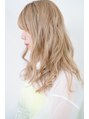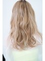 ブリーチを2回以上してからアッシュベージュを重ねたハイトーンカラー。印象的な色合いで、全体的にカールで動きを出す事で、艶と透け感がとてもきれいなおススメのカラーです。