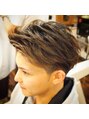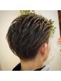 周りに2ブロックを入れてトップは後ろにも前にも流せるように長めに残したスタイル