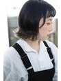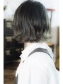 ベビーバングが目を惹くかわいい切りっぱなしボブ。大きめのウェーブで毛先は外ハネに◎カラーリングは明るめベースにブルーブラックを入れてインナーカラーはグレーっぽい色味で透明感を出しました。