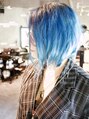 ダメージレスなケアブリーチを使いワンブリーチしてサファイアブルーをオン。根元が濃いブルーグラデーションです。