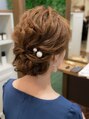 結婚式の参列にぴったりなアップスタイルです。ゆるいスタイルですが、締めるところは締めていますので上品に仕上がっています。