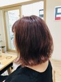 ロングスタイルのお客様をバッサリ切りっぱなしボブに仕上げました。ロングの時にバレイヤージュでグラデーションを入れていたので、その赤系のグラデーションカラーもいい感じに残りました。