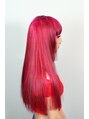 ネイビー×レッドのツートンカラー♪黒染め履歴がありましたが、ケアブリーチで丁寧に色を抜き、しっかり発色するような色をチョイス!さりげなくティンセルも入ってます♪