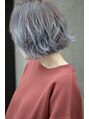 切りっぱなしのボブに程よく軽さを持たせ、ヌケ感を作りました。カラーは根元がダークグレー、毛先がシアーブルーのグラデーションカラー。毛先は3回ブリーチを行っていますが、ケアブリーチの為ダメージも最小限です。