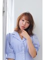 人気のレングスに軽やかなAラインフォルムの中にレイヤーを施したスタイル。前髪は目を強調したいのでギリギリでカットし軽く巻いて少しウエットな仕上がりに。「オトナカワイイ」を再現。