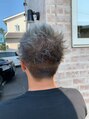 サイドと後ろは刈り上げてさっぱりと!夏らしいツーブロックです。日焼けした肌とフォギーグレージュが最高にマッチしていてカッコイイ!!