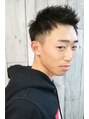 2mmのバリカンでメリハリをつけたアップバングスタイル♪ダークトーンと刈上げの白さの対比がかっこよさを抜群に上げている