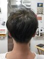 スッキリ清潔感を出しつつもトップにボリューム感を出して頭の形がカッコよく見えるようにカットしました。オフィスでもレジャーでも好印象なスタイルです。色は頭皮にも優しいヘナで。数日でブラウンに発色します。