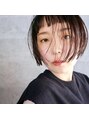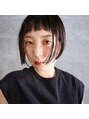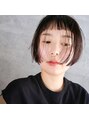 ぱつっとラインのボブ。シンプルなスタイルな中に前髪や髪の質感で、らしさをプラスしています。