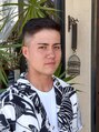 男らしく前髪アップスタイルに短い刈り上げで清潔感を出しましたジェル系ワックスでスタイリングも簡単に!!