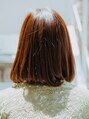 ワンレングスベースのナチュラルなミディアムボブのスタイル。毛先はワンカールの内巻きで女性らしい丸みをつけてスタイリング。その分バングは巻きすぎずにナチュラルなカール感でバランスをとっています。