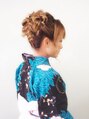 エメラルドグリーンが鮮やかでとっても素敵な浴衣ですね♪ヘアスタイルは逆毛を立てず、カールがそのまま出るようにセットしているので華やかだけどまとまりのある仕上がりになっています♪