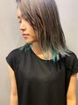 ケアブリーチでリフトアップしたベースにグレーとエメラルドグリーンをプラスしてスパイスをきかせたデザインカラースタイル