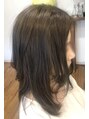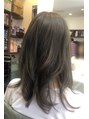 カットは、トップに遊び心のあるレイヤーを入れて、軽やかに…。そして、サファイヤブルー色のイルミナカラーで透明感をプラスしました。