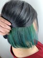 夏っぽいインナーカラー!内側をターコイズグリーンにし、表面をダークグレーで大人っぽい、サマーカラー!表面を明るめに残しても、もちろん可愛いですが、あんまり派手すぎたくないけど、夏だし、明るめもやりたいって方にオススメです☆